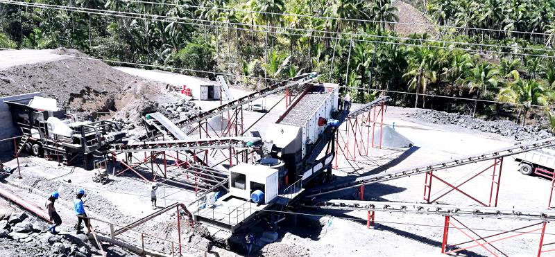 采用了全自动的电动给料机,履带输送机物料进行送进和送出,物料通过给料机送入反击式碎石机和鄂式碎石机进行封闭式三次循环破碎,避免浪费。